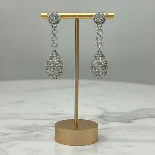 Elegant Silver Crystal Teardrop Dangler Earrings