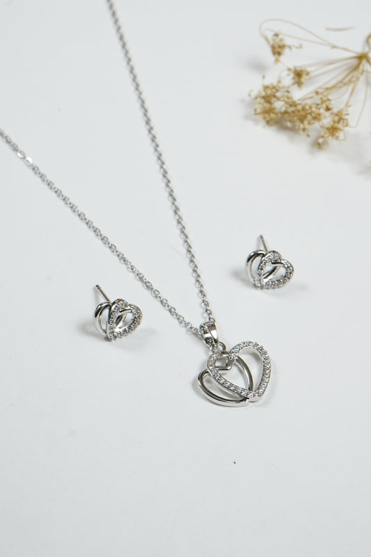 Heart Overlap Pendant Necklace Set